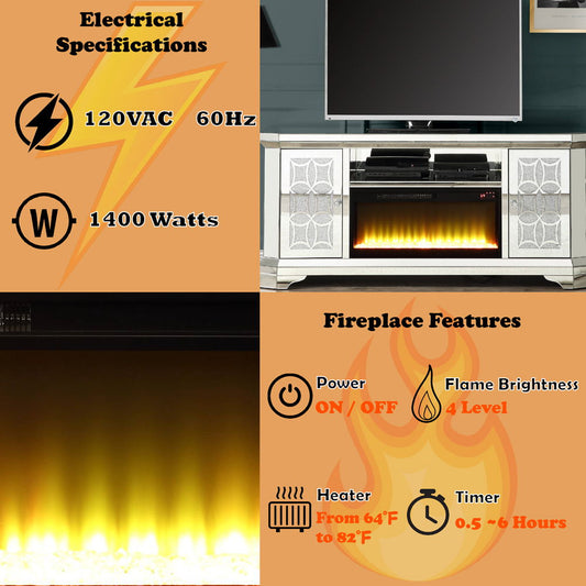 Noralie - TV Stand With Fireplace & LED - Mirrored & Faux Diamonds
