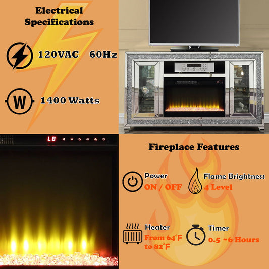 Noralie - 35" TV Stand With Fireplace - Mirrored & Faux Diamonds