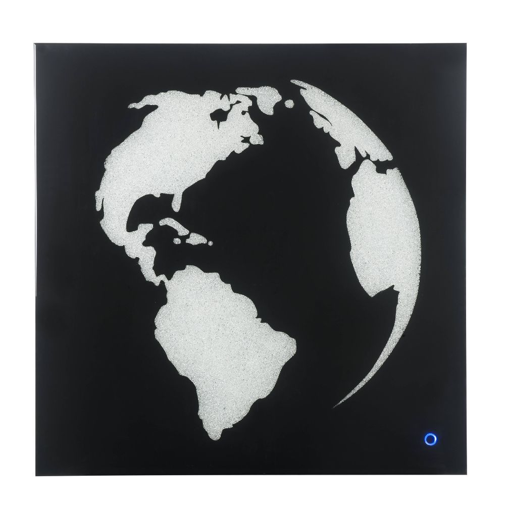 Wall art w/LED lights. Yeah, you heard that right. Step up the surroundings of your home with this incredible Adamas collection of inspiring art featuring LED touch lighting. The high-quality faux crystal world pattern encased glass frame. At night, you can turn on and off the LED function. A glam display table that naturally attracts the eye.
