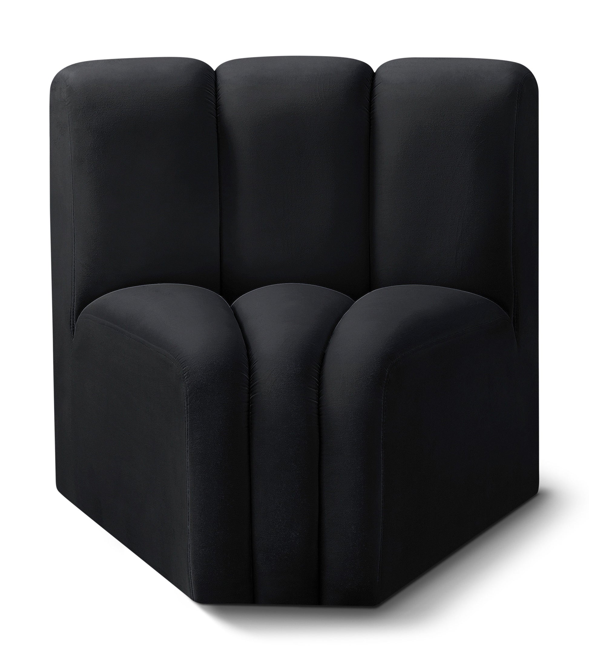 Give your living room or den the perfect blend of style and versatility with this Arc velvet fabric curved corner chair. Part of the Arc modular furniture collection, this chair comes upholstered in rich velvet fabric and features deep channel tufting that adds a touch of luxury while enhancing comfort and support. A seamless combination of form and function, this chair can be used with other Arc pieces to create a myriad of configurations in your well-curated room.
