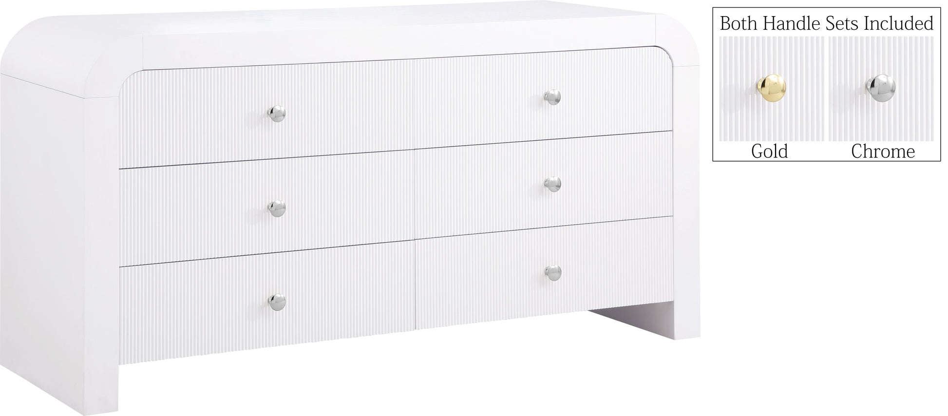 Make organizing a stylish affair when you bring home this Artisto dresser. This beautiful dresser features an elegantly eye-catching design with its rich wood veneer finish and its textured drawer front designs. Six drawers give you oodles of room for storing items out of sight and out of mind, and the roomy drawers make sure that organizational power is at your fingertips.