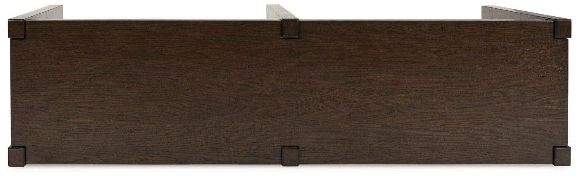 If casual contemporary style is your thing, then you'll love this sofa table. A wood-tone finish with a rich, dark grain contrast lends a soothing sensibility, while two independent adjustable shelves add function to great form. Sleek and stylish, this versatile piece is also ideal as a TV stand or console bookcase. What a fresh take on cool for the modern home.