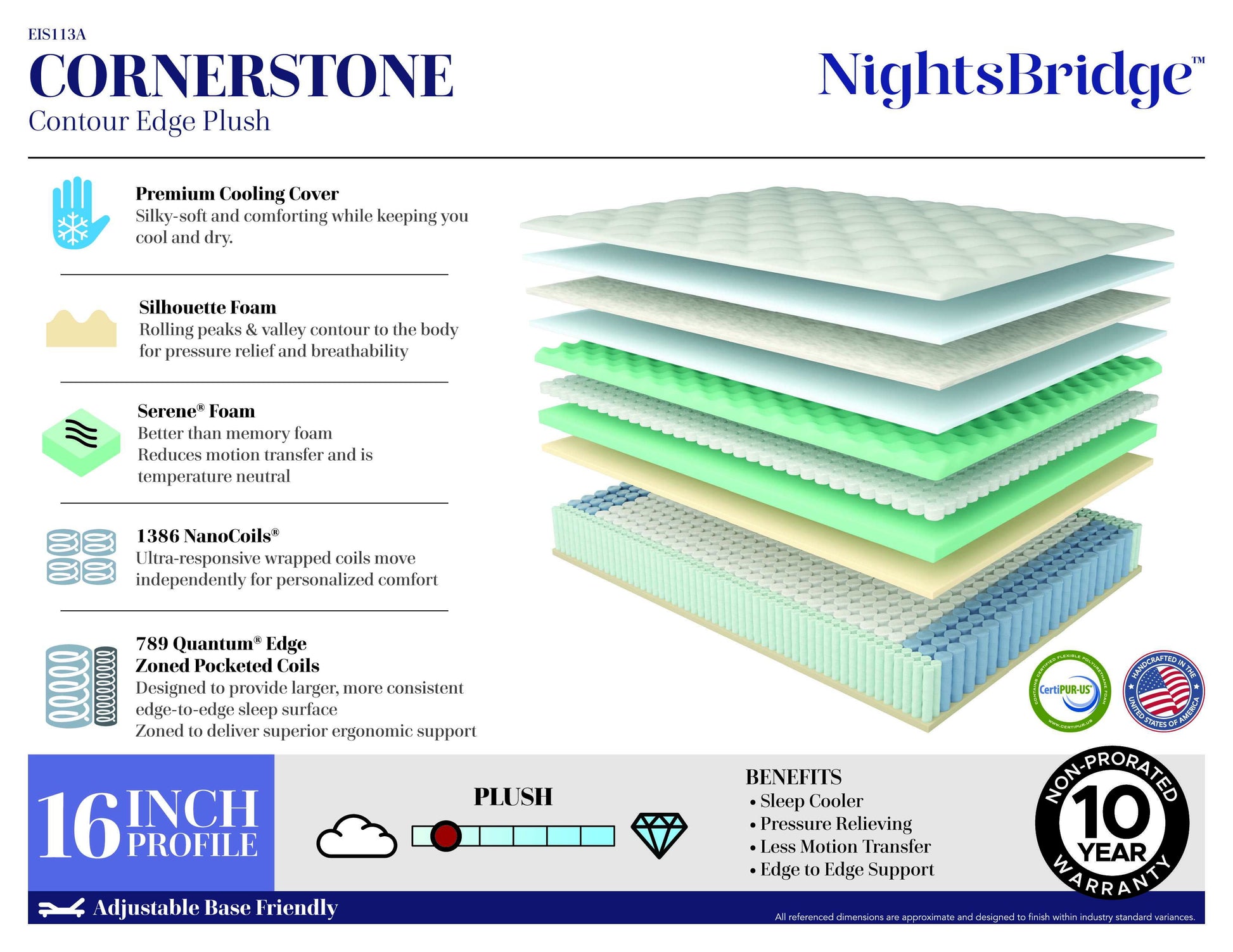 NightsBridge - Cornerstone Contour Edge Plush Hybrid Mattress - California King