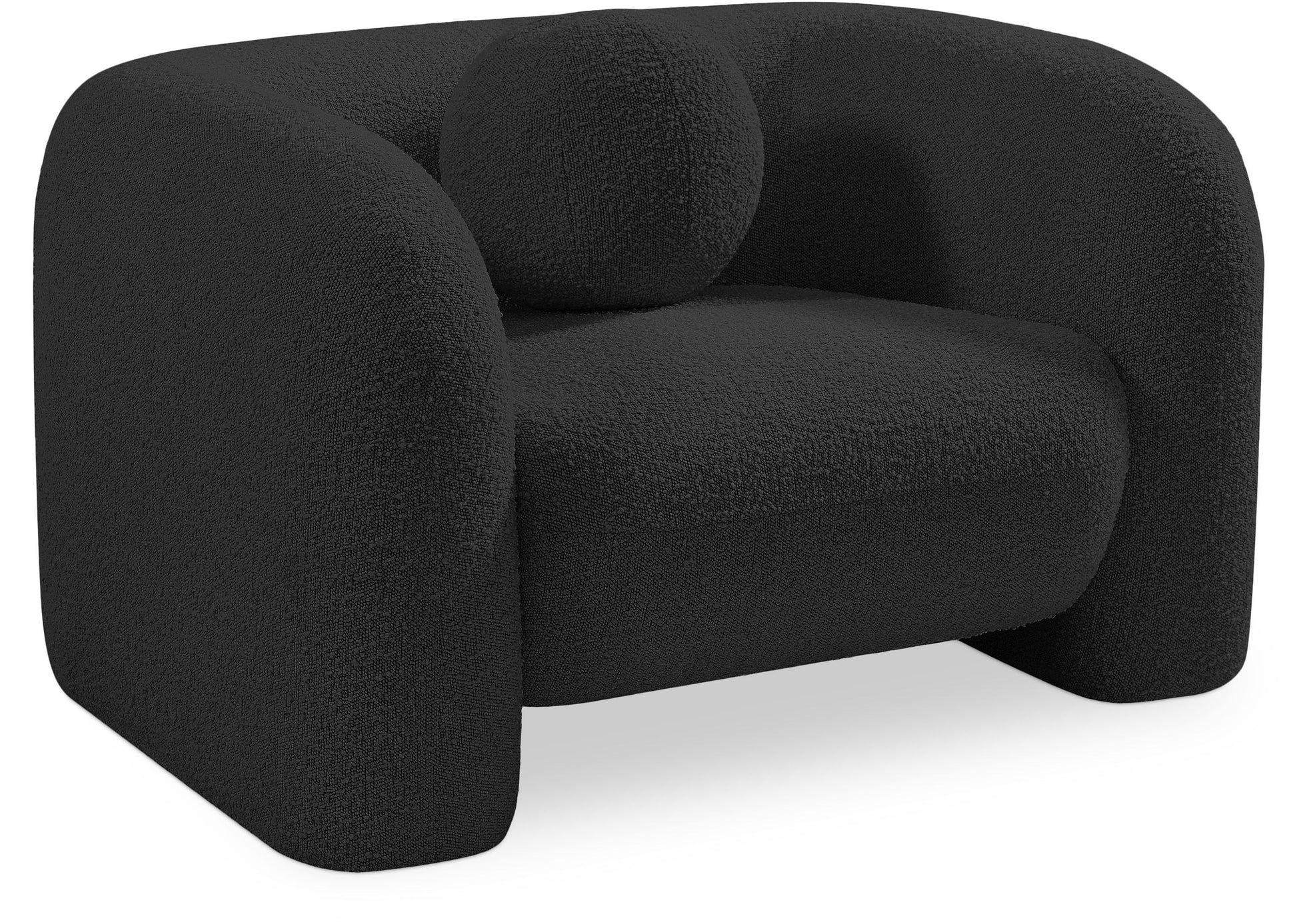 The Emory Chair draped in the rich boucle fabric is a sight to behold. Its captivating elegance is matched only by its comfort, making it the epitome of style and relaxation. The texture of the fabric adds depth and dimension to the chair, making it a stunning addition to any room. With its sleek design and cozy feel, the Emory Chair is the perfect place to unwind and indulge in a moment of pure luxury.