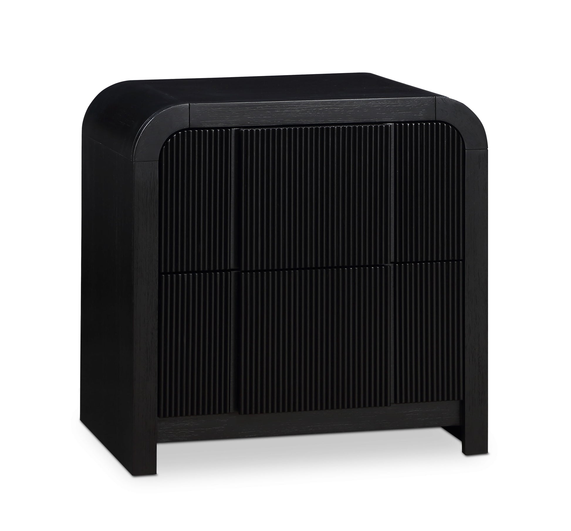 The Fluted Night Stand is a great way to enhance the decor of your room and elevate its style. The fluted drawer fronts highlights intricate detailing, while the arched shape of the dresser provides an eye-catching design feature. The rich finish gives depth and character to the overall appeal. This piece not only serves a functional purpose for storage but also adds a touch of elegance to any living space.
