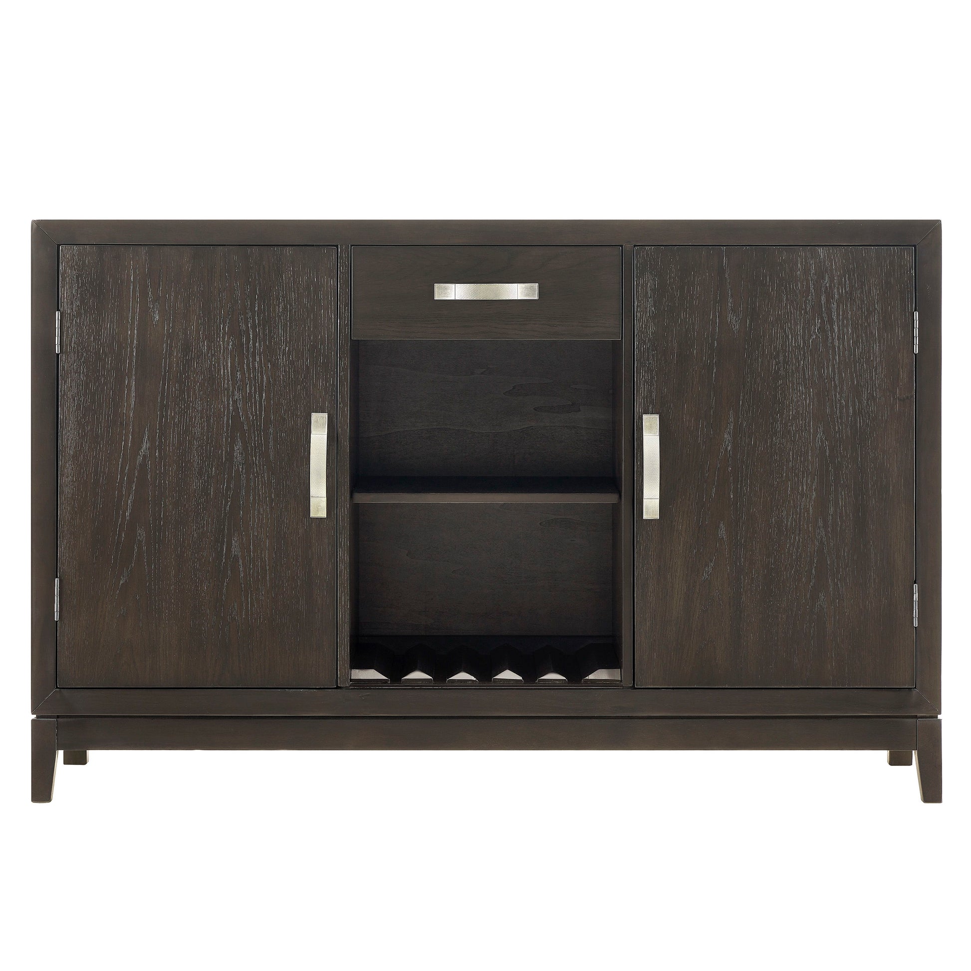 Enhance your dining or living space with this sophisticated and functional storage solution. Designed with a sleek, modern aesthetic, it features a rich, dark finish that exudes elegance while complementing a variety of décor styles. The spacious cabinets provide ample room for dinnerware, glassware, or entertaining essentials, while the open shelving is perfect for displaying your favorite bottles and décor accents. A convenient drawer adds extra storage for smaller items, keeping your space organized and clutter-free. Accented with stylish metal hardware, this piece effortlessly combines practicality with timeless charm, making it the perfect addition to any home.