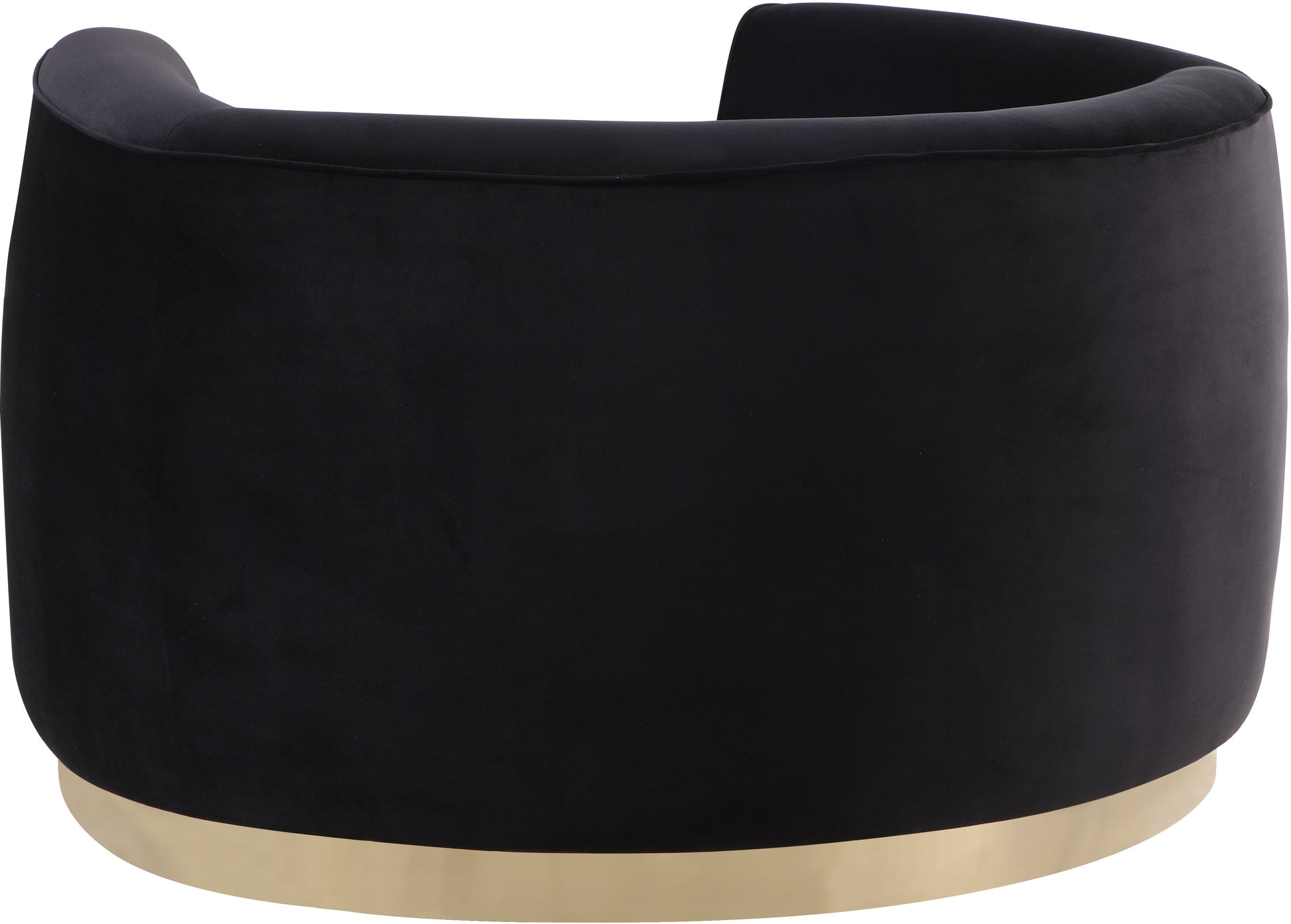 The perfect mix of velvet and stainless steel comes to life in your space with this Julian Chair. This bold velvet chair comes upholstered in rich, sumptuous-to-the-touch velvet to make a fashionable statement in your space. The curved back design lends it a modish touch, and the stainless steel trim around its base adds to its glitzy appeal. Stage this chair alone or with other pieces in the Julian collection.