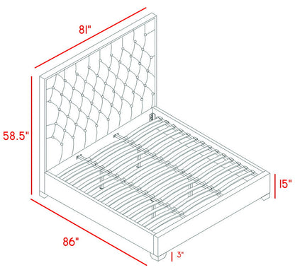 Make the Lexi velvet bed part of your dream bedroom setup. This bed has all of the bells and whistles you want, including a super tall headboard that stands nearly five-feet tall. The bed is covered in velvet fabric for a luxe look, and it's deeply tufted for added luxuriousness. The headboard is soft and welcoming against your back and head as you read or watch TV in bed, and the bed rests on legs for dependable sturdiness and durability. Use it without a box spring or foundation, since the slats are included.