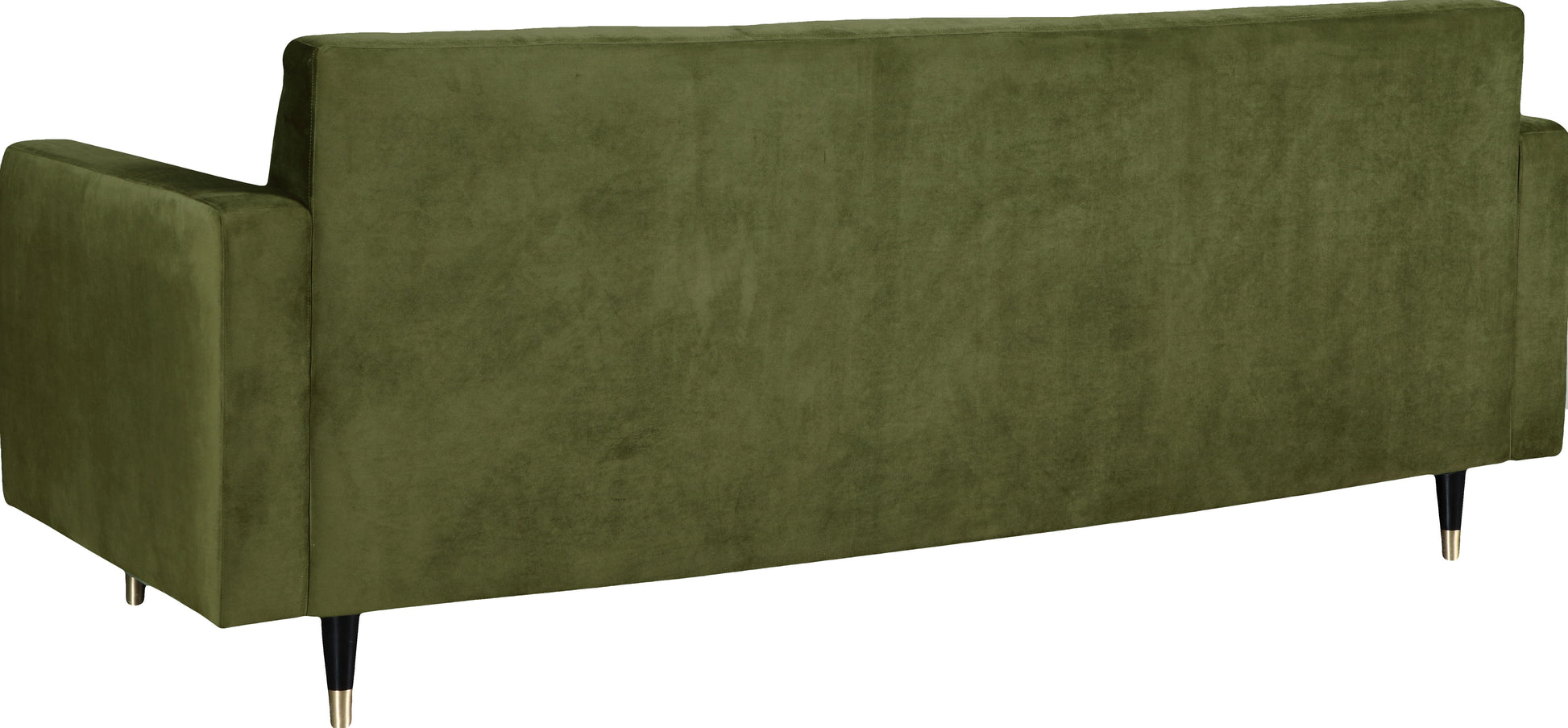 Cozy up to the comfort of this Lola Sofa. Its rich color adds a jolt of excitement and fun to your space, shaking things up in a neutral-colored room. The back is channel tufted for a beautiful, contemporary look and to help the back cushioning maintain its welcoming loft. Elegant slant-tipped legs with tips lend this sofa a charmingly modern finish and provide a sturdy foundation. Add it on its own, or add the matching loveseat and chair for a coordinated look.