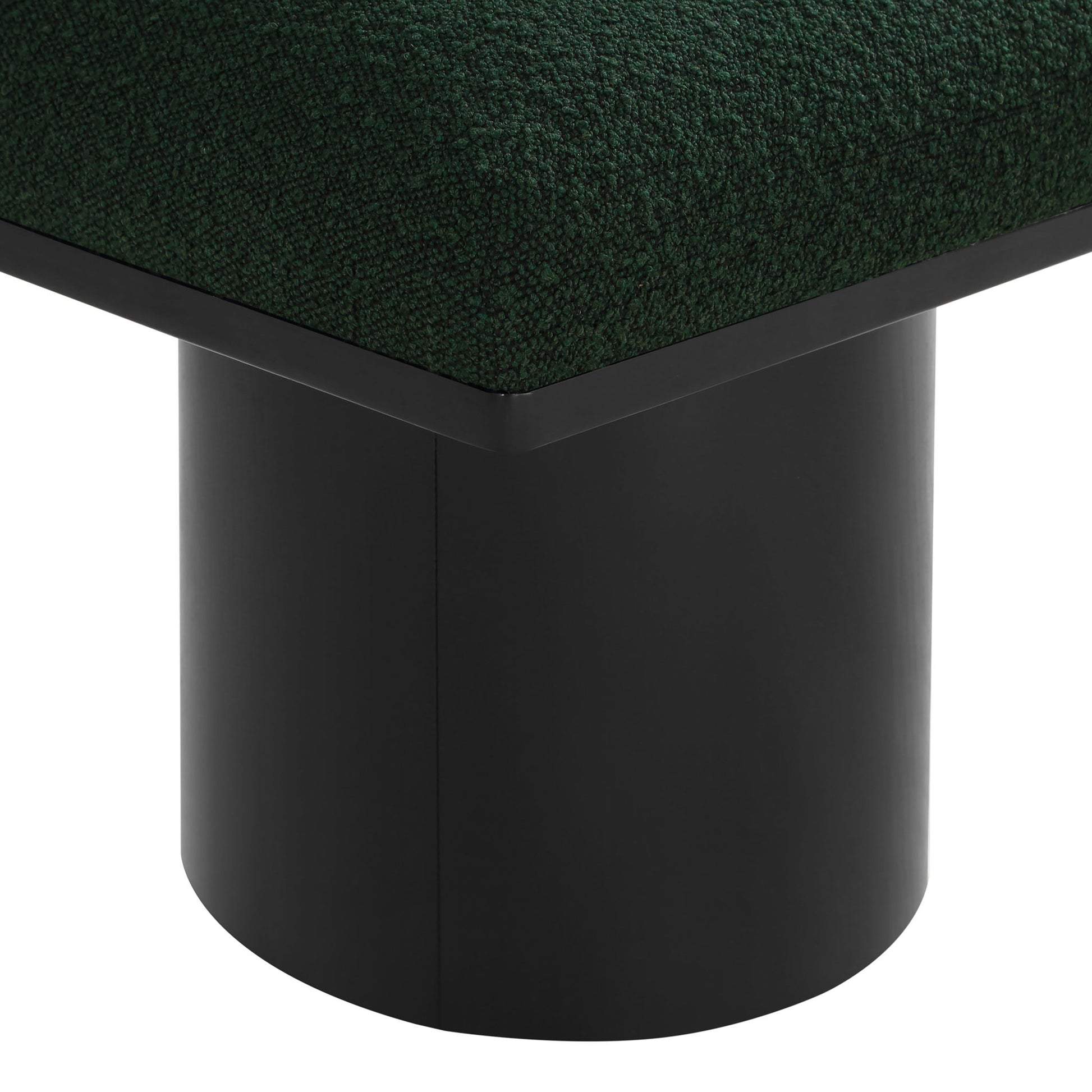 Bring valuable seating and remarkable style to your space with this Pavilion Boucle Fabric Bench, an exquisite balance of style and usability for the entryway, bedroom, and beyond. Crafted from oak veneer with a black finish, this bench has a 4-inch-thick seat cushion that's channel-tufted for a touch of luxury. The bench's columnar bases add a dash of Art Deco design, making it a captivating focal point in any room.