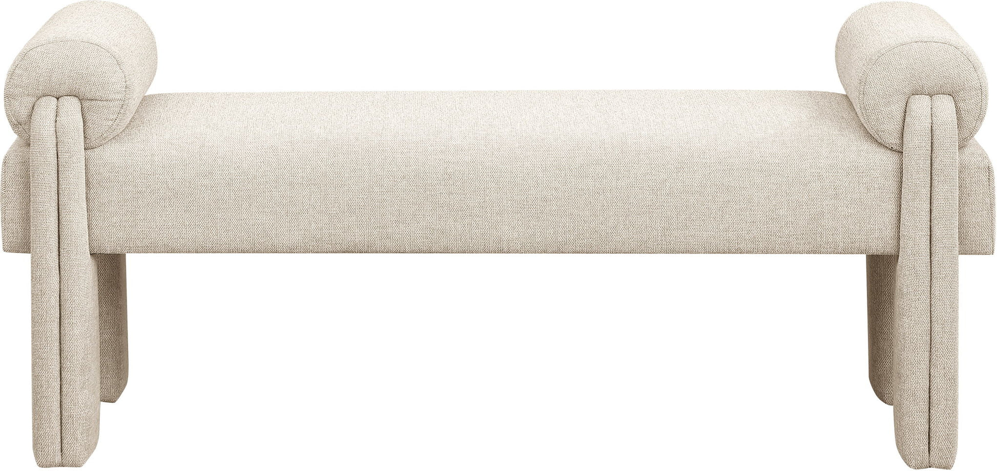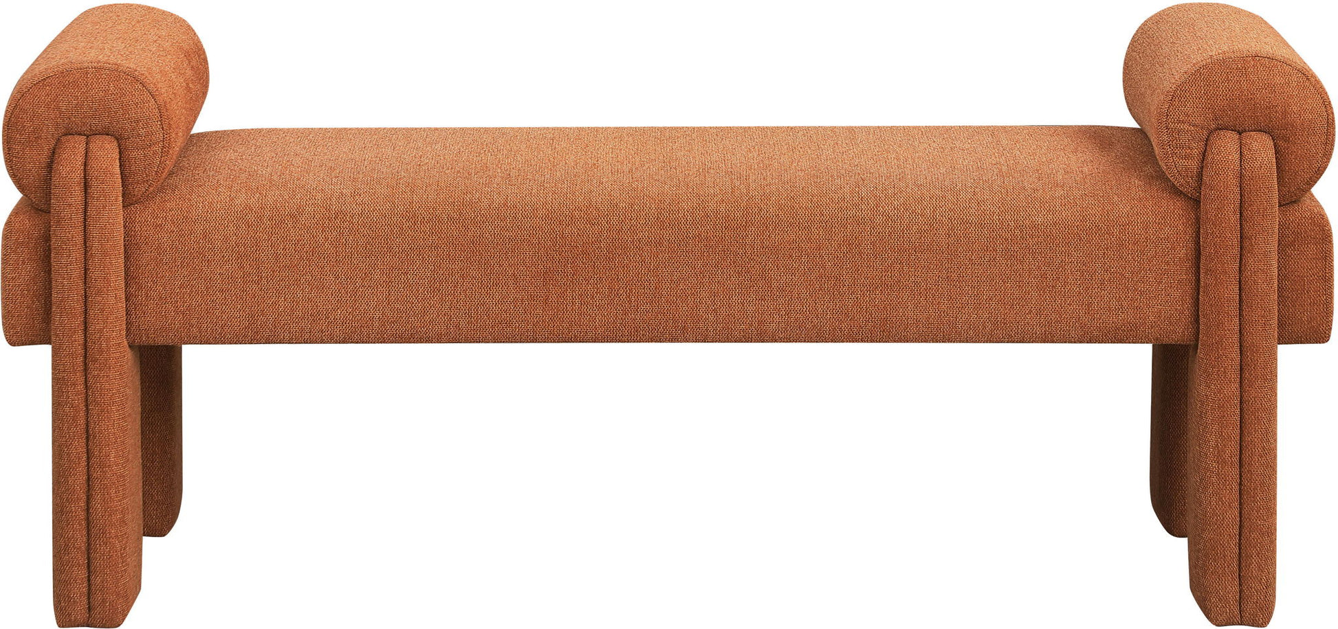Banish boredom in your room's decor with this Stefano polyester fabric bench. The perfect bench to rest at the end of your bed in the master suite or in a spot of interest in the foyer or entryway, this lovely art deco seat has loads of room to sit while you pull on boots or take off shoes. The soft polyester fabric is lovely to the touch, and the rounded arm pillows give it an extra inviting feel.